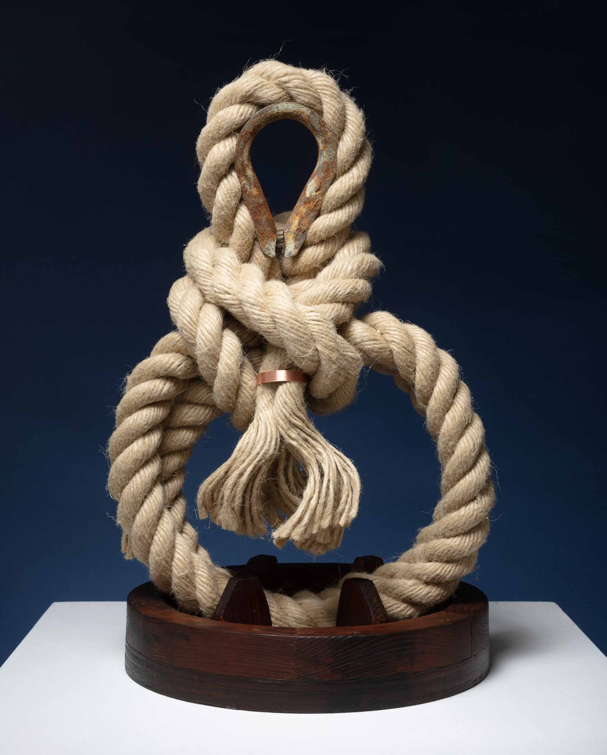 The commissioned public installation stood at 5-meters-high, inspired by Vandy's studio relocation next to the Ropery at Chatham Historic Dock Yard. Vandy explored the properties of rope in this work, as well as its symbolic and historical importance. Rope was used in ancient architectural construction, essential to the maritime industry, to the building of Empire, Colonialism and Slavery. By manipulating, sewing and binding this seemingly simple material Vandy relates yet subverts these historical associations of rope. The end form speaks to the origins of dance in hunting rituals, carnival masquerades and spirit dancers of the African diaspora.