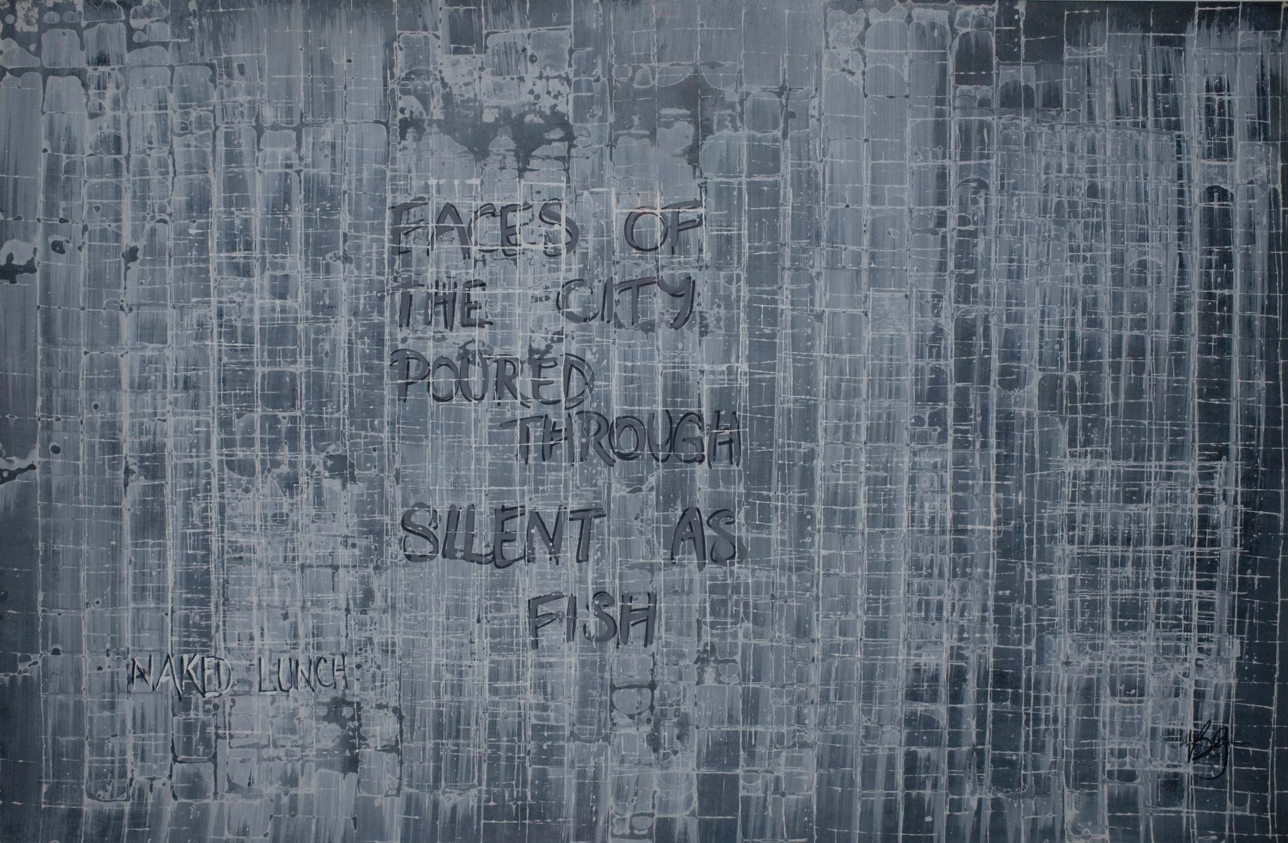 Gysin (1916-1986) had a lifelong fascination with the juncture of word and image, and Calligraffiti of Fire (1985) is the culmination of a long series of works inspired by hieroglyphics and calligraphy. He studied Japanese and Arabic calligraphy, and evolved his own style of word/image glyphs, supple as flames or tendrils of smoke. Calligraffiti of Fire embodies Gysin's explorations of his inner visions through the 'flicker' effect, and permutations of his personal calligraphic signature. The painting is meant to be 'read' from right to left.