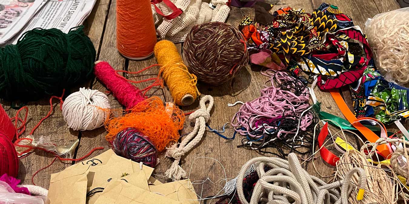 The concept of Beyond the Weave is central to the exhibition, visually manifesting as a wooden pole, around which visitors can strap-weave recycled fabric strips. As the show unfolds, these strips will build into ever-growing braids, offering a live exploration of connection, materiality and communal play. The work, created by Esther Adesigbin and the OG Youth Collective, playfully nods to the European maypole, where communities celebrate spring by dancing around a tall pole.