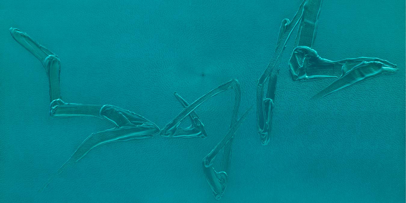 Tian Wei is renowned for his striking monochromatic canvases in bold colours that explore the written word and the plasticity of meaning. Words and quotations in minute script fill the backdrop of Tian’s paintings, forming a patterned ground on which larger semi-abstract shapes are drawn. The cursive lines spell out simple English words, such as ‘soul’ and ‘red.’ These selected English adjectives and nouns represented in Chinese calligraphic style give the viewer insight into the artist’s lived experience of an emerging synergy between eastern and western sensibilities.