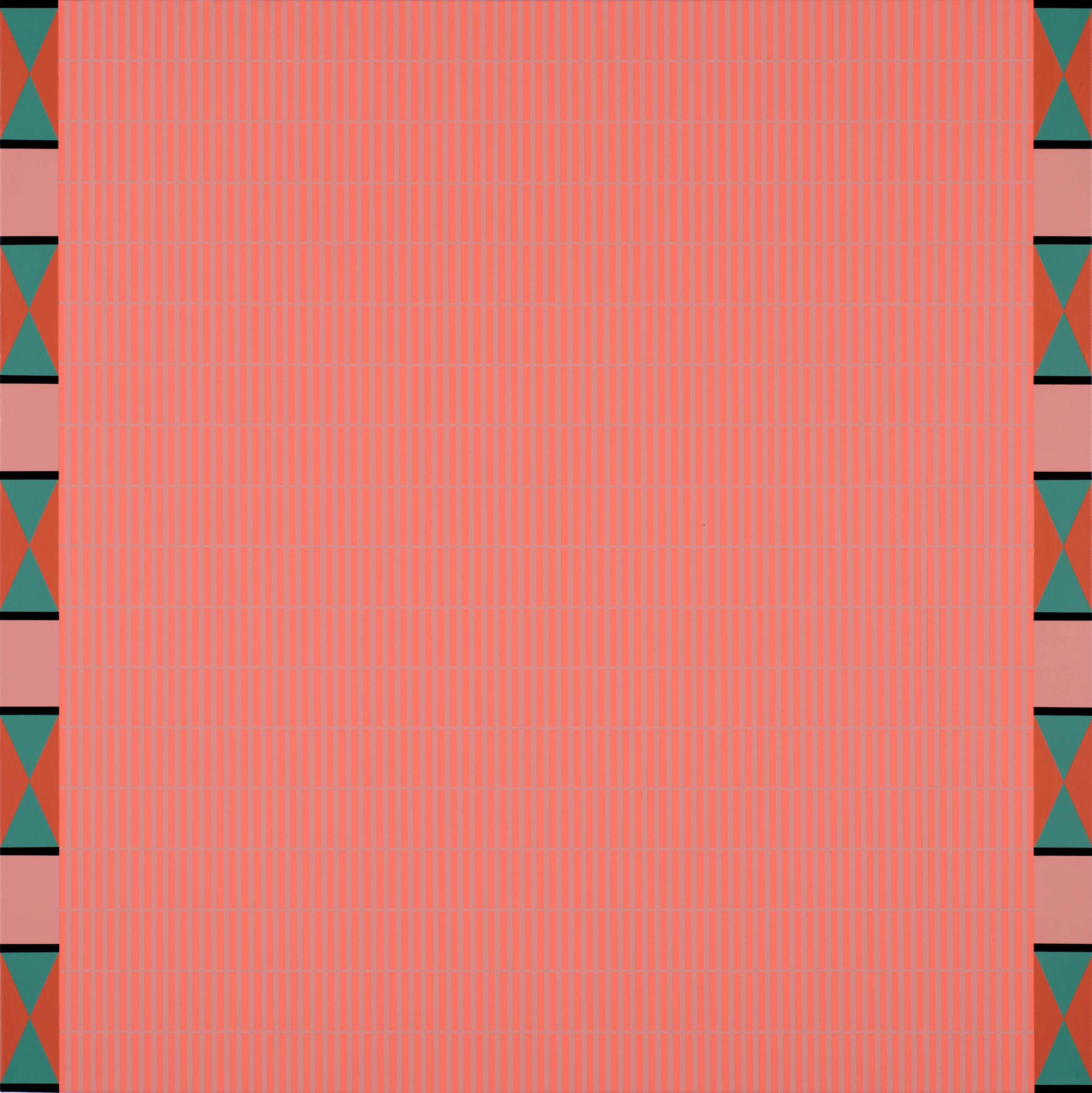 The process is meticulous and meditative, often obsessive in mark and repetition. She draws inspiration from Indigenous textiles, beadwork, pottery and landscapes. Her work shares personal stories through abstraction, colour and rhythm. She engages past, present and future to depict Indigenous design through a contemporary lens. Craig creates new narratives within her work while celebrating her ancestors and Indigenous land. Her abstract paintings and prints expand the definition of Native American art, and how culture is transmitted.