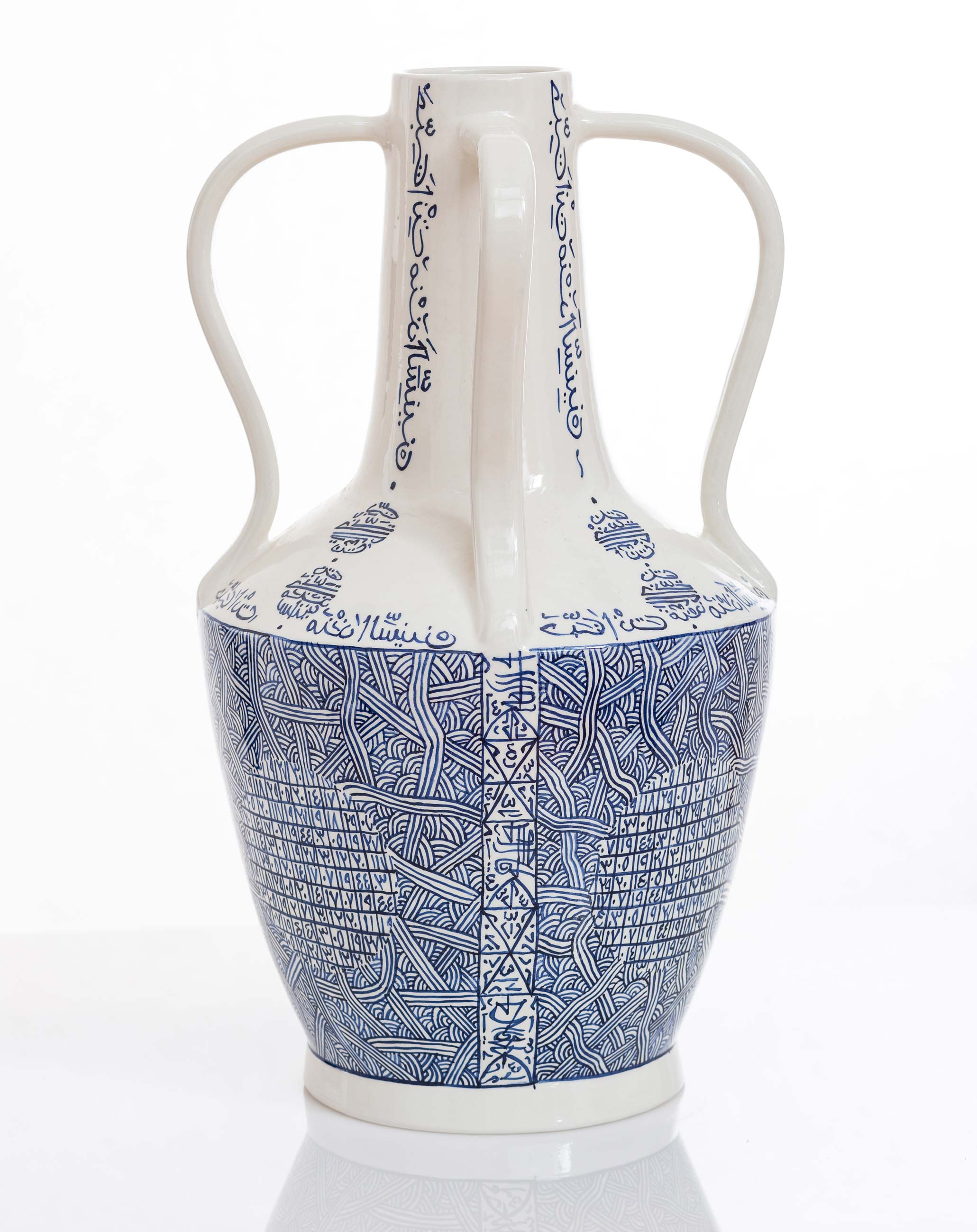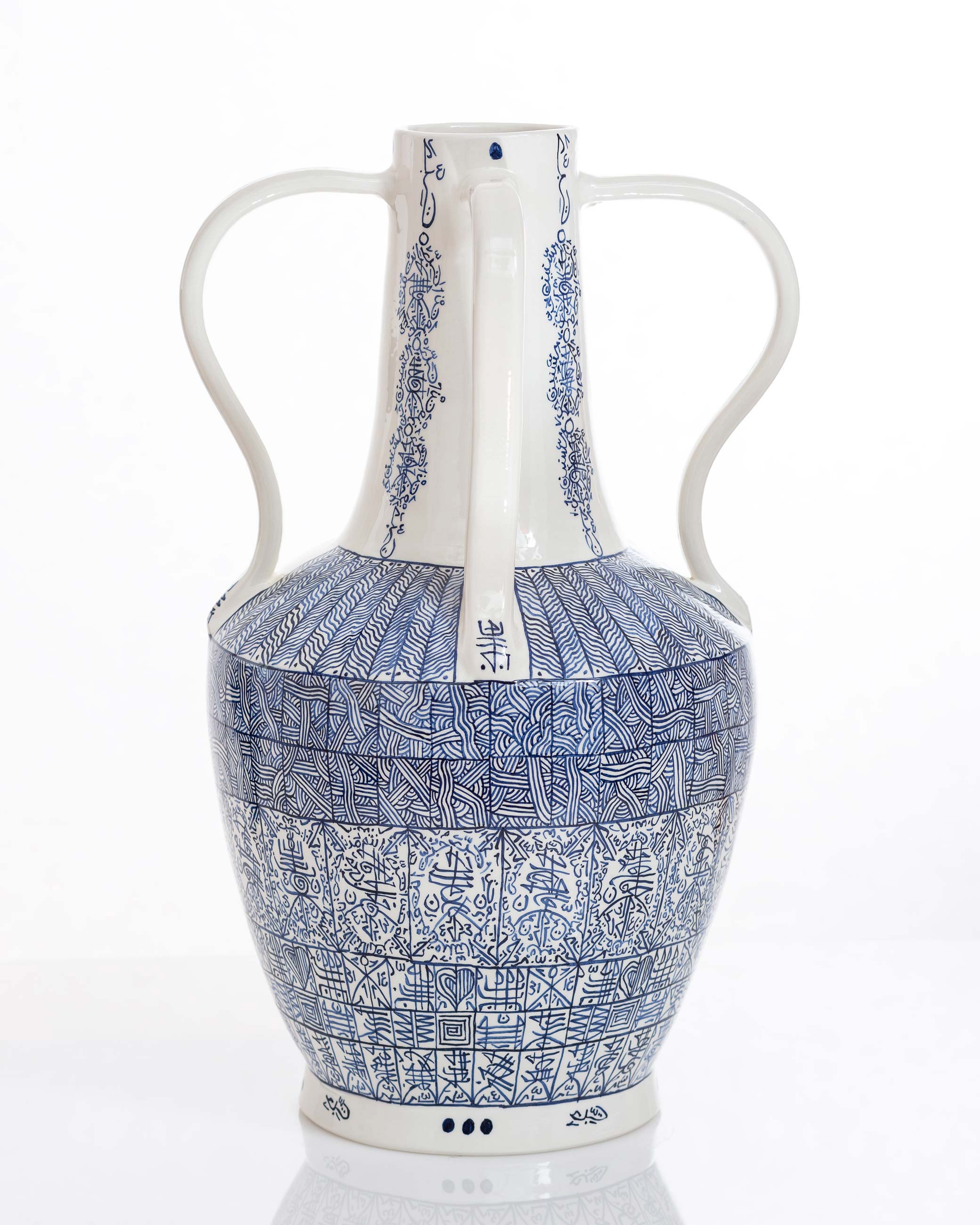 Rachid Koraïchi’s large-scale projects employ diverse elements commonly executed in widely divergent places, either in collaboration with practitioners of ancient, traditional crafts or employing sophisticated modern technological processes. Three poignant vases from Koraïchi's Lachrymatoires Bleues (2020) series, created under the intense conditions of pandemic ‘lockdown’ in Barcelona, will be on display.