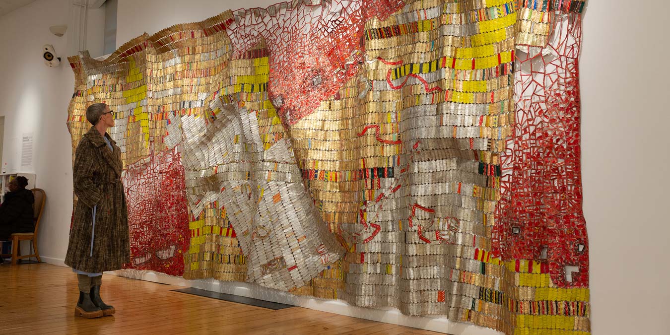 The show will include a new, large-scale work by El Anatsui, who first coined the term ‘nomadic aesthetic’ to indicate the broad range of freedoms discoverable within his sculptures. The modularity of these emergent material structures, composed of metal bottle-caps, confers an ease in folding, packing and transporting them to different sites, and allows them to hang in a wide variety of arrangements. This topological flexibility lets both artist and curators explore a surprising range of spatially adaptive reconfigurations.