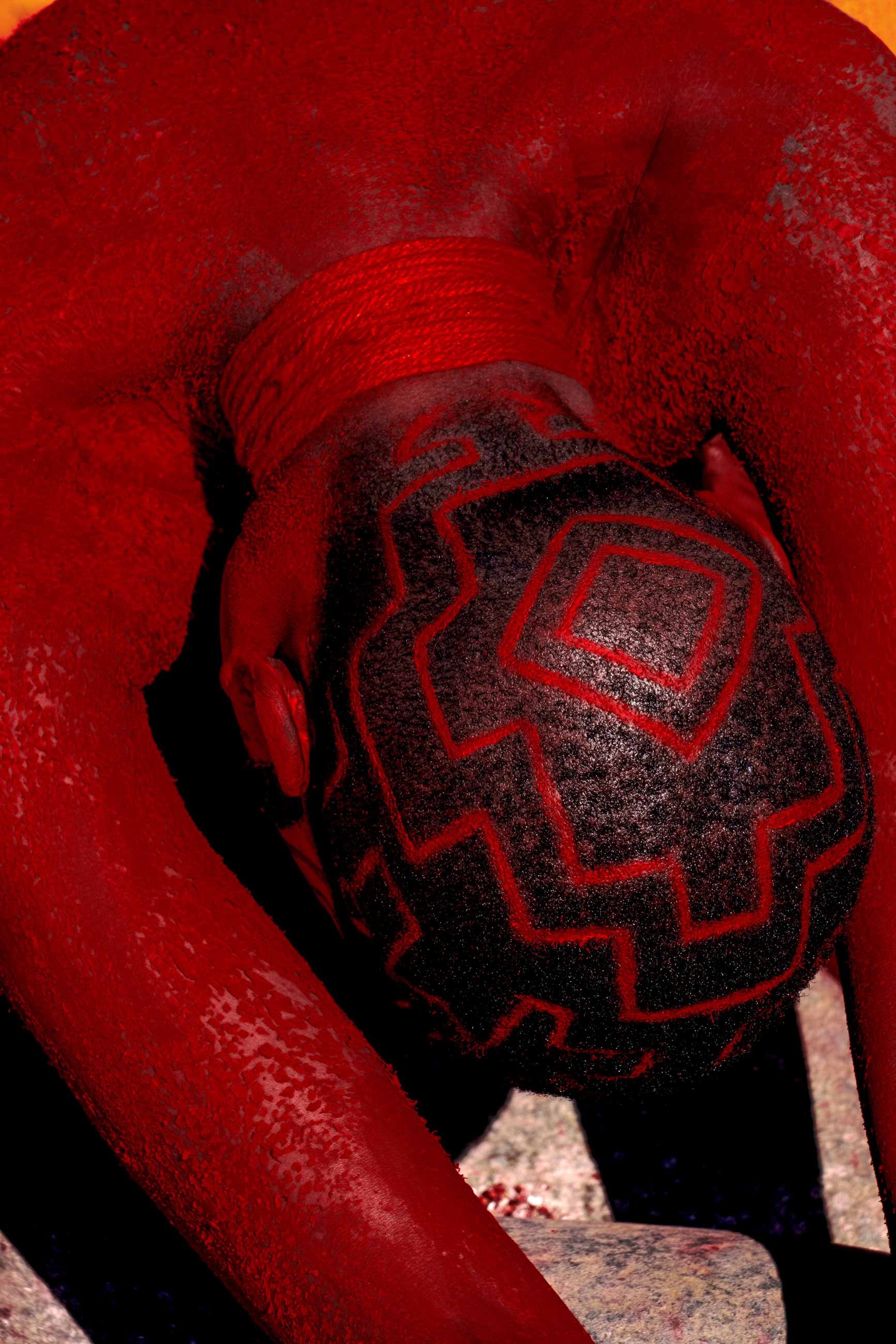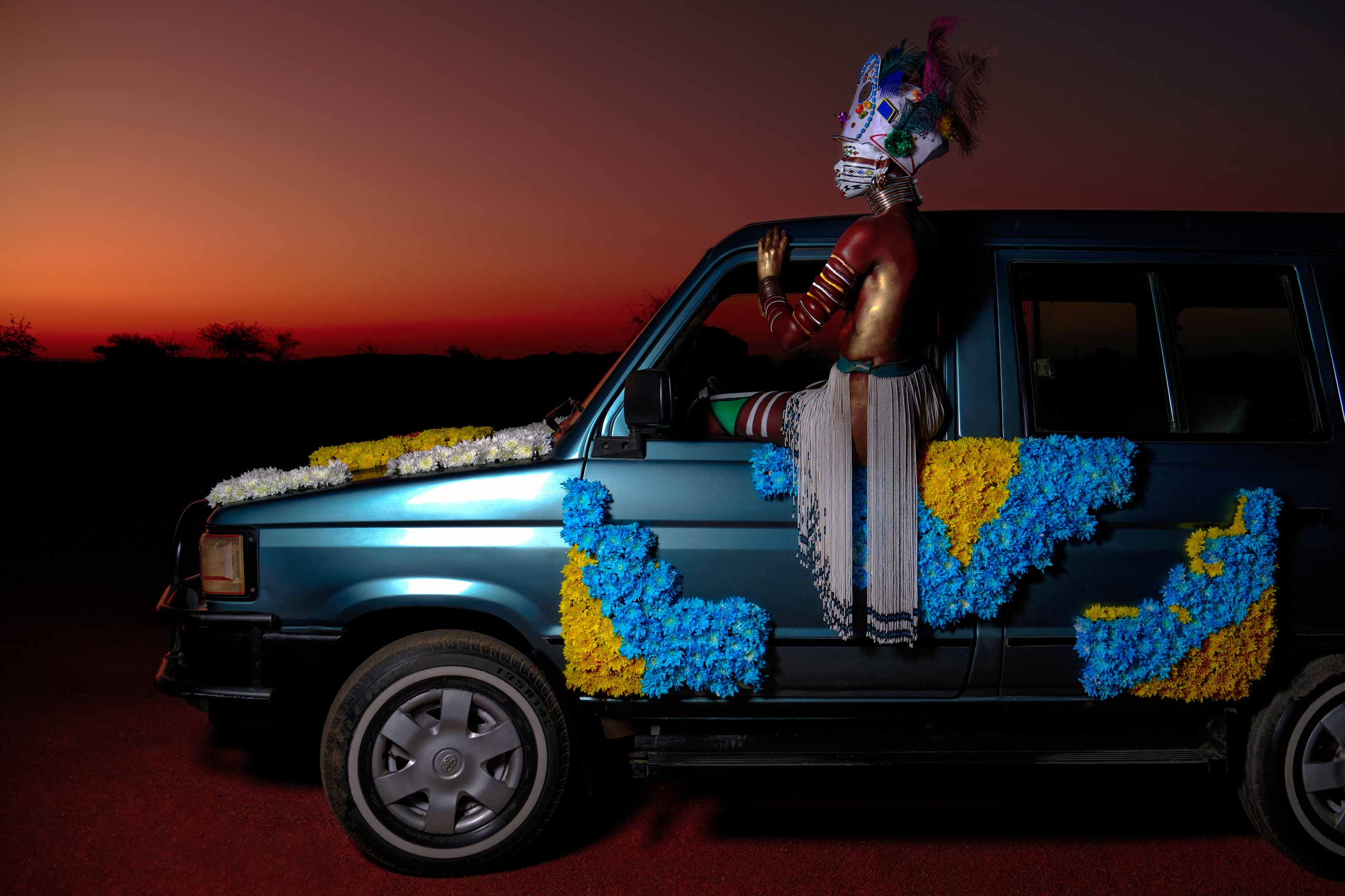 The artist’s short film is complemented by a series of powerful photographs representing various ceremonial spirits. Also on display in the space will be beaded steel sculptures, influenced by the intricate geometric patterns of Ndebele beadwork and traditional woven cloth. The overlay of beadwork on these abstract sculptural forms is a contemporary tribute to the importance of beading, which for centuries was used by the Ndebele people as a means of communication. These sculptures underline Masombuka’s ongoing investigation into how intergenerational knowledge is transmitted and how this exchange informs identity in the modern world.