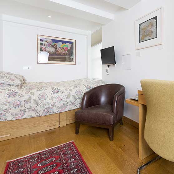 | Room 12 | £170 | £200 (£240 - 3) | Luxurious large room, double bed, private bathroom, mini-kitchen, television, underfloor heating. Triple occupancy possible. Located on the 2nd Floor. |