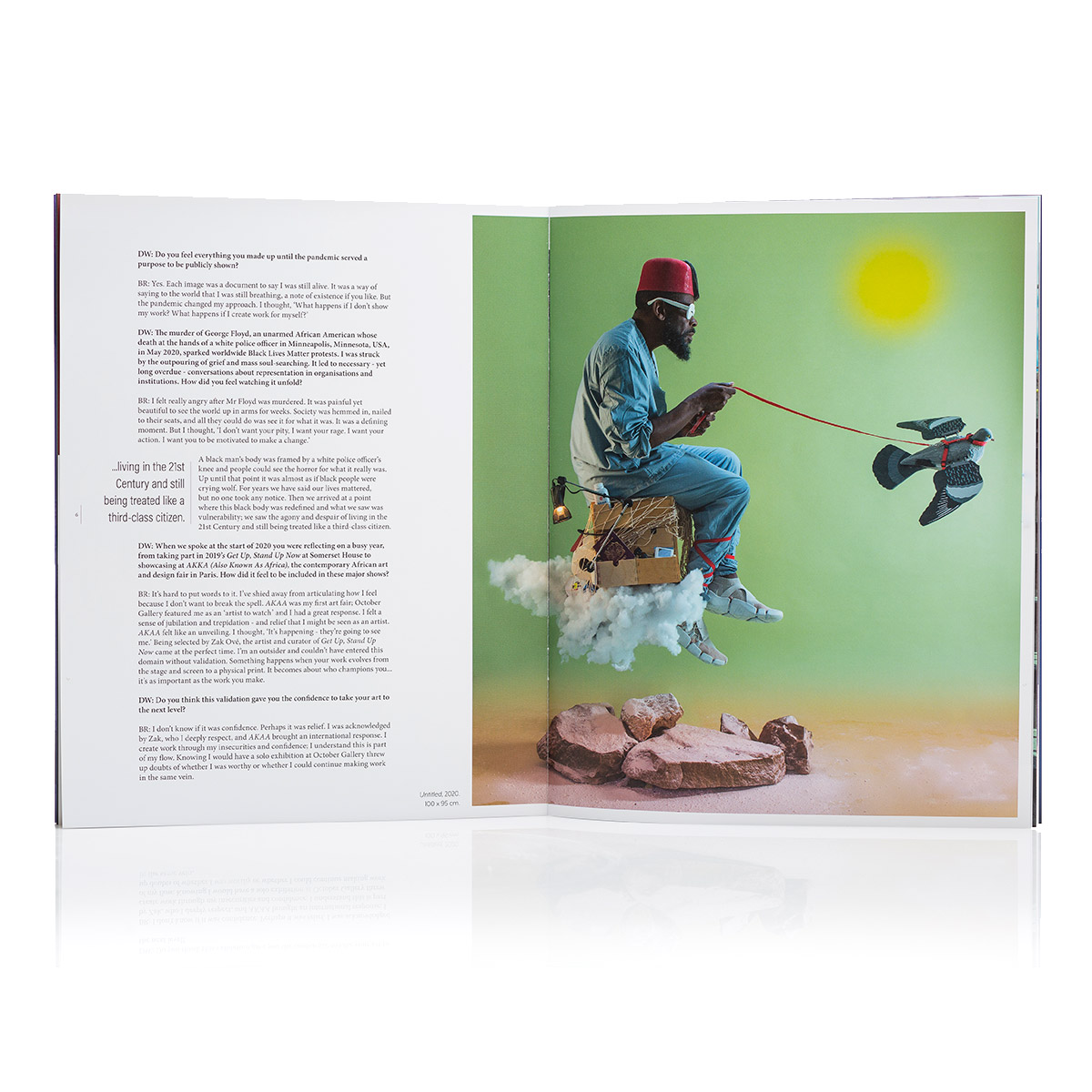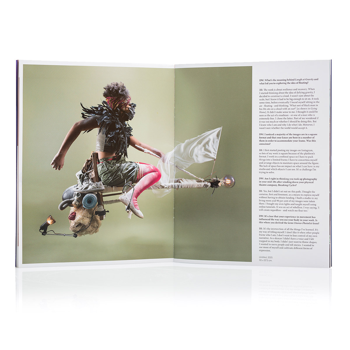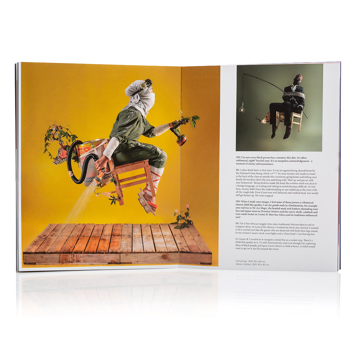 Choreography and photography unite in Benji Reid’s evocative images. His photographs, primarily composed of self-portraits in eye-catching anti-gravitational poses amongst a medley of props, seduce the spectator to enter into alternative realms. The subjects of the hyper-realities he proposes appear to be liberated by the sheer force of artistic imagination. Although adorned with fantastical objects and set against imaginary backdrops, each perfectly poised portrait remains grounded in the recognisable world in which we all exist together. Whatever amalgam of visual referents he concocts, Reid’s extraordinary photography underlines his determination to produce ‘no image without soul.’ Reid’s work is on display in the exhibition Fayre Share Fayre at the Whitworth Art Gallery, Manchester, until the 4th of September, 2022 and at Bethlem Museum of the Mind, until the 12th of November, 2022.