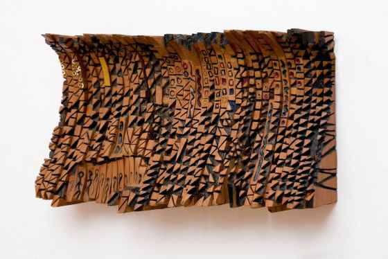 El Anatsui’s internationally renowned sculptural practice continues to challenge the way we look at sculpture today. In the London exhibitions, his focus is on wood, his original and primary material. ‘Go Back and Pick’ presents a new series of wall-mounted sculptures, which evolve from the planar wooden reliefs that characterised his art in the 1980s and 1990s.