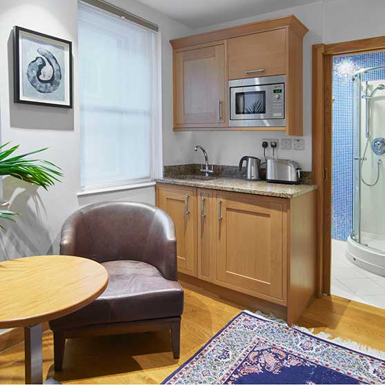 | Room 12 | £170 | £200 (£240 - 3) | Luxurious large room, double bed, private bathroom, mini-kitchen, television, underfloor heating. Triple occupancy possible. Located on the 2nd Floor. |