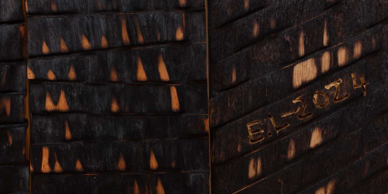 For El Anatsui, who came of age listening to his older peers debate the merits of modern western versus traditional artforms, these remain fundamental concerns. Nkrumah's championing of Sankofa – returning to retrieve those forgotten truths left behind – finds echo in Anatsui's own poem, “Old and New”1, where he acknowledges the inherent poetry of old wood, while committing to the expression of new ideas in novel forms. Anatsui is both History Man and Visionary Seer, and his wood sculptures act as potent talismans. His magnificent sculptures, embracing both classical African and global contemporary insights, offer a vantage point from which to orient ourselves in space, while better understanding our place in time.