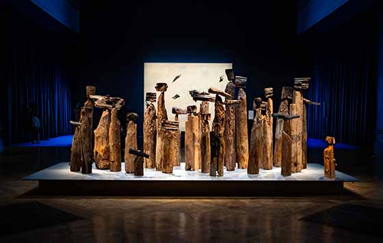 El anatsui's internationally renowned sculptural practice continues to challenge the way we look at sculpture today. In the London exhibitions, his focus is on wood, his original and primary material. 'Go Back and Pick'presents a new series of wall-mounted sculptures, which evolve from the planar wooden reliefs that characterised his art in the 1980s and 1990s.