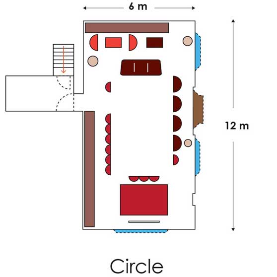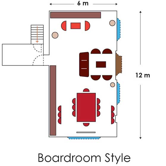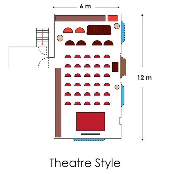 ROOM CAPACITYStanding: 40 peopleTheatre Style: 40 people Training circle: 30 Board Room: 12 |